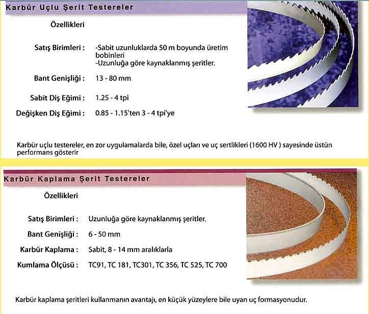 Demir, çelik, alüminyum, prinç vb. malzemelerin kesimlerinde kullanılan testereler.